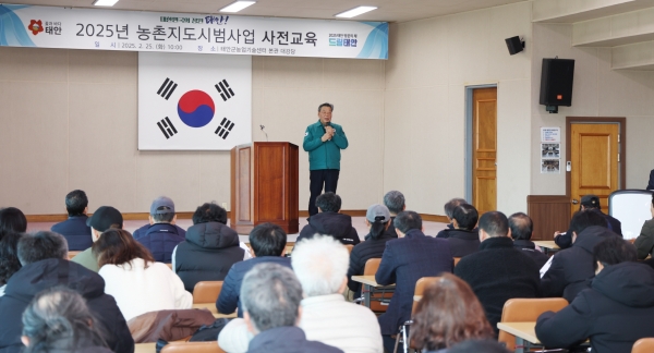 [충청뉴스큐] 태안군이 지난 25일 태안군농업기술센터 대강당에서 가세로 군수와 지역 농업인 단체 관계자 등 120여명이 참석한 가운데 ‘2025년도 농촌지도 시범사업 사전교육’을 개최했다고 밝혔다.