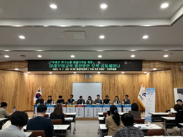 [충청뉴스큐] 부여군은 지난 7일 부여여성문화회관에서 ‘부여군 인구소멸 위기 극복을 위한 미래부여교육 발전방안 모색 공동세미나’를 개최했다.