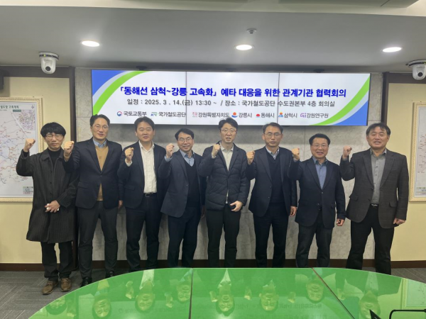 [충청뉴스큐] 강원특별자치도는 강원 영동권 핵심사업인 동해선 ‘삼척~강릉 고속화’ 철도의 예비타당성조사 대응을 위해 실무협의체를 구성하고 3월 14일 서울 국가철도공단 수도권본부에서 첫 회의를 개최했다.