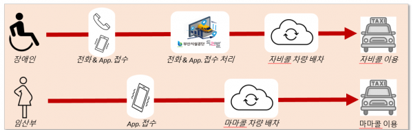 현재 △‘장애인 콜택시’는 자비콜 750대 △‘임산부 콜택시’는 등대콜 2천100대가 협약해 개별 운영 중이다.