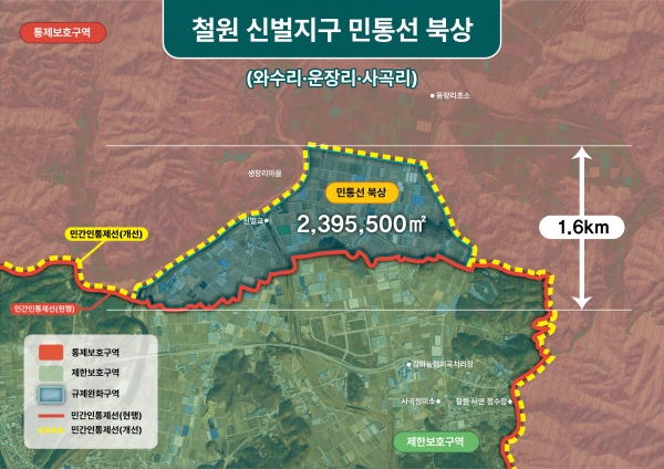 철원군 신벌지구는 영농 활동이 활발한 지역으로 그간 획일적인 보호구역 설정으로 주민 출입에 큰 불편이 있었으나, 이번 규제 해제로 건축 행위가 가능해지며 주민 재산권 행사도 확대될 전망이다.