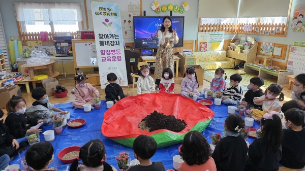 지난 4일 한국타이어 어린이집에서 열린 첫 프로그램에는 20여명의 어린이가 참여해 양성평등 강의를 듣고 원예 체험을 즐겼다.