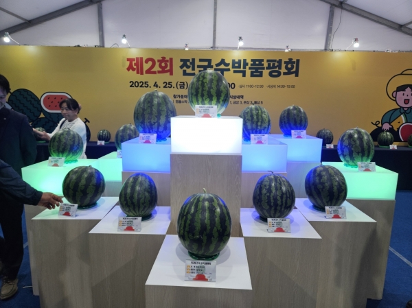전국 각지의 수박 재배 농가들이 출품한 수박을 대상으로 당도, 과형, 외관, 식감 등의 항목에 대한 엄정한 심사가 진행됐다.