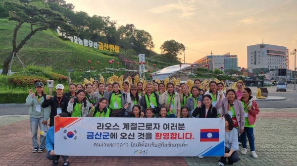 [충청뉴스큐] 금산군은 외국인 계절근로자 확보를 위한 국제 협력 사업의 일환으로 지난 13일 무사히 입국한 라오스 외국인 계절근로자 33명을 지역 농가 17곳에 인계했다.