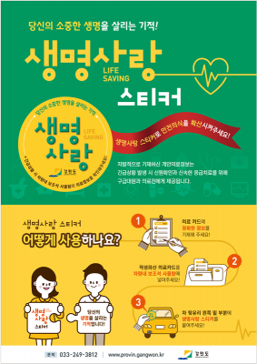 박근영 강원도 재난안전실장은“생명사랑 스티커 보급 캠페인은 적은 비용으로 소중한 생명을 살릴 수 있는 가장 효과적인 사업이라며, 많은 도민들이 참여하는 안전문화운동으로 자리매김할 수 있도록 적극 추진하겠다”고 밝혔다.