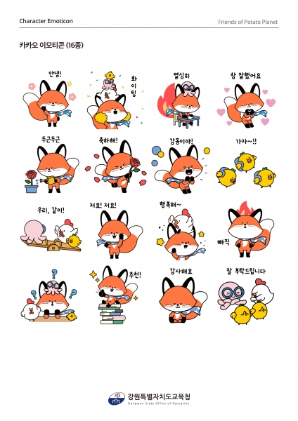 강원특별자치도교육청은 6월 18일 오후 2시부터 교육청 카카오톡 채널을 통해 선착순 2만 5천 명을 대상으로 이모티콘 16종을 무료 배포한다.