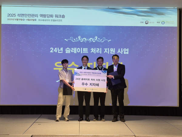 [충청뉴스큐] 강원특별자치도는 환경부가 주관한 ‘2024년도 슬레이트 처리지원 국고보조사업’ 성과평가에서 영월군이 전국 208개 시군구 중 ‘우수기관’ 으로 선정되어 6월 19일 개최된 ‘2025년 석면안전관리 역량강화 워크숍’에서 환경부장관 기관표창을 수상했다고 밝혔다.