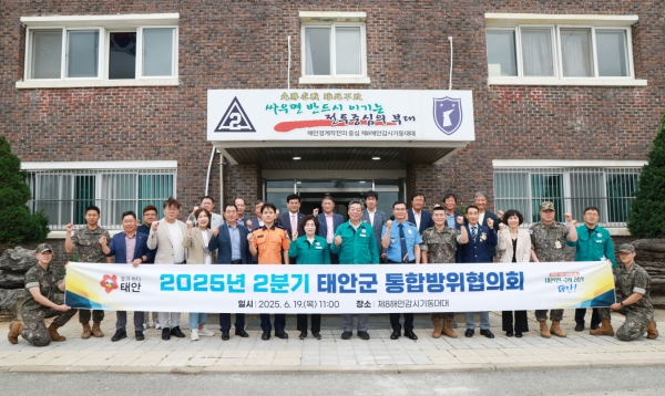 [충청뉴스큐] 태안군이 지난 19일 8해안감시기동대대 회의실에서 가세로 군수를 비롯해 13개 기관·단체 소속 위원과 민간위원 등 총 30여명이 참석한 가운데 ‘2025년 2분기 태안군 통합방위협의회’를 개최했다고 밝혔다.