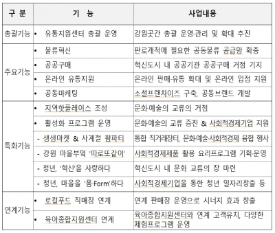 마을기업·사회적기업·협동조합·자활기업 등 사회적경제기업 제품의 전시·판매기능, 수도권 시장개척을 위한 물류 공급기능 등 사회적경제기업의 판로지원의 핵심이 될 것이며,