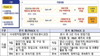 올해부터 ‘분사 전’ 민간이 아이디어를 발굴·육성하기 위한 사업화 지원과 ‘분사 후’ 정부가 사업화 및 R&D 패키지 지원+R&D자금)을 통해 사업 성공률을 제고하는 방식으로 확대 개편해 운영 중이다.