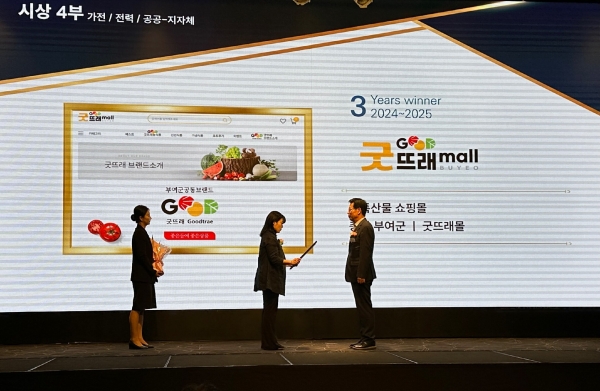 [충청뉴스큐] 부여군의 공식 농특산물 온라인 쇼핑몰 “굿뜨래몰”이 산업정책연구원이 주최하는 ‘2025년 국가서비스대상’농특산물 쇼핑몰 부문에서 3년 연속 대상을 수상했다고 27일 밝혔다.