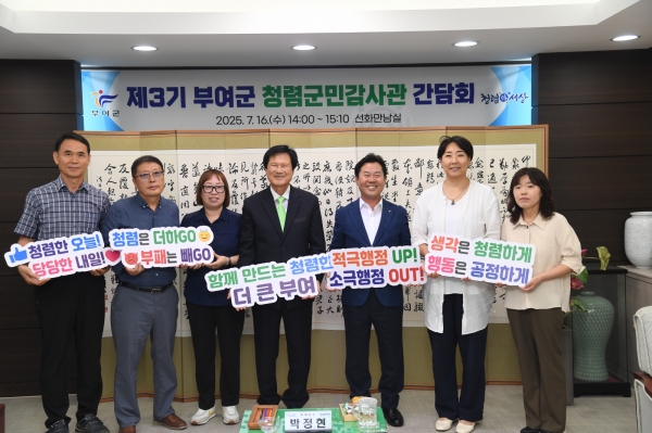 박정현 부여군수는 “청렴행정의 시작은 군민의 신뢰와 참여”며 “이번 자리는 단순한 의견 청취를 넘어 협치의 의미를 갖고 있으며 청렴군민감사관들의 제언은 지역사회 청렴도 향상에 큰 힘이 될 것이다”고 밝혔다.