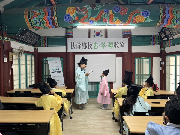 부여향교에서 진행된 ‘청금록에 새겨진 내 이름’ 프로그램은 지역 어린이와 학생들이 향교라는 전통 공간에서 조선시대 선비의 정신을 체험하고 인문학적 소양을 기를 수 있도록 기획됐다.