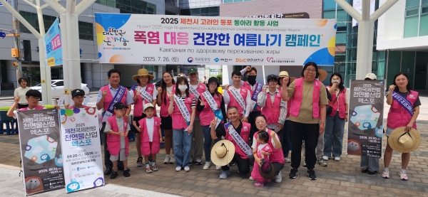 이날 활동에는 봉사동아리 회원 30여명이 참여해 무더위에 지친 시민들에게 생수와 아이스크림을 나누어주고 친환경 에코백과 부채 꾸미기 체험을 함께 진행하며 온열질환 예방과 폭염 대응에 힘썼다.
