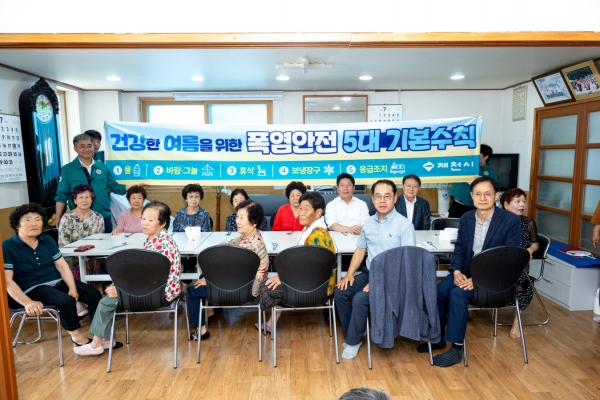 또한, 28일에는 김창규 제천시장이 폭염 취약계층 보호 활동의 일환으로 봉양읍 연박1리 경로당을 방문, 어르신들의 안부를 살피고 에어컨, 냉장고 등 냉방시설 작동 상태를 확인하는 등 폭염 피해 예방에 앞장섰다.