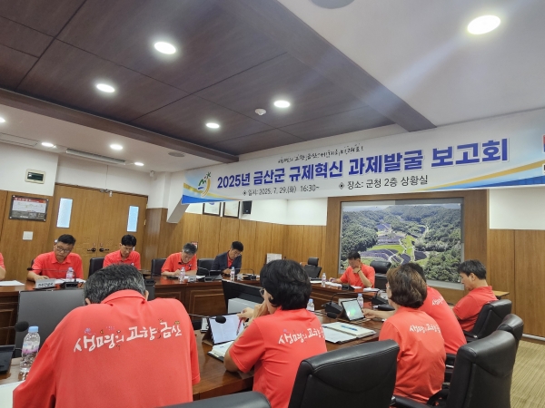 [충청뉴스큐] 금산군은 지난 29일 군청 상황실에서 규제혁신 과제발굴 보고회를 개최하고 부서별 규제개선 과제에 대해 보고 및 논의하는 시간을 가졌다.