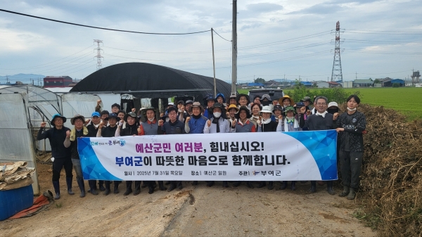 [충청뉴스큐] 부여군은 지난 7월 16일 기록적인 집중호우로 큰 피해를 입은 예산군민의 신속한 일상 복귀를 돕기 위해 31일 박정현 부여군수를 비롯한 공무원 총 50명이 자원봉사에 참여해 정성과 땀방울을 더했다.