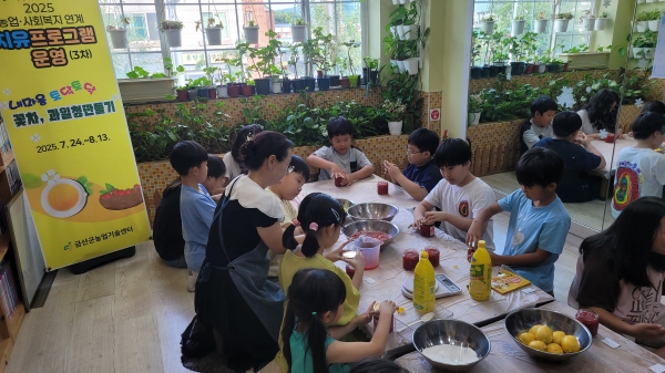 치유프로그램은 식용꽃을 이용해 꽃차를 만들고 계절과일로 청을 만드는 과정에서 자연의 향기와 색을 느끼며 학생들의 감성적 치유와 성취감을 끌어내도록 구성됐다.