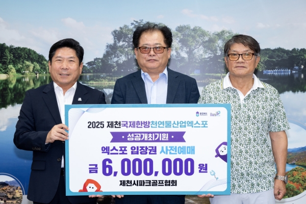[충청뉴스큐] 제천시파크골프협회가 2025제천국제천연물산업엑스포의 성공 개최를 기원하며 사전예매에 적극 동참했다.