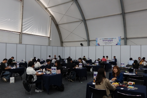 [충청뉴스큐] 2025제천국제한방천연물산업엑스포 산업관에서 열린 국내바이어상담회 첫날, 홈쇼핑·온라인몰·백화점 등 주요 유통사와 기업들이 1:1 상담을 이어가며 실질적인 판로 개척 기회를 모색하고 있다.