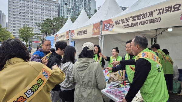 [충청뉴스큐] 천안시는 지난 18~19일 이틀간 천안종합운동장에서 열린 ‘2025 빵빵데이 천안’ 축제 현장에서 숨은 위기가구 발굴을 위한 ‘우리이웃, 빵빵하게 지켜요’ 행복키움지원단 홍보부스를 운영했다.