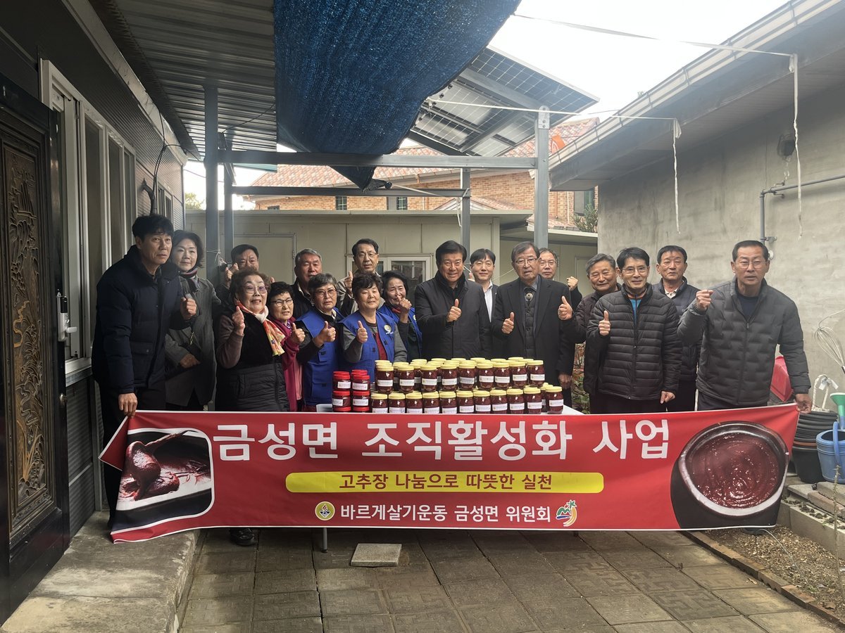 강희천 금성면장은 “바쁜 일정 속에서도 지역을 위해 봉사해 주신 바르게살기위원들께 감사드린다”며 “나눔을 통해 지역 공동체가 더 단단해지는 계기가 되길 기대한다”고 전했다.