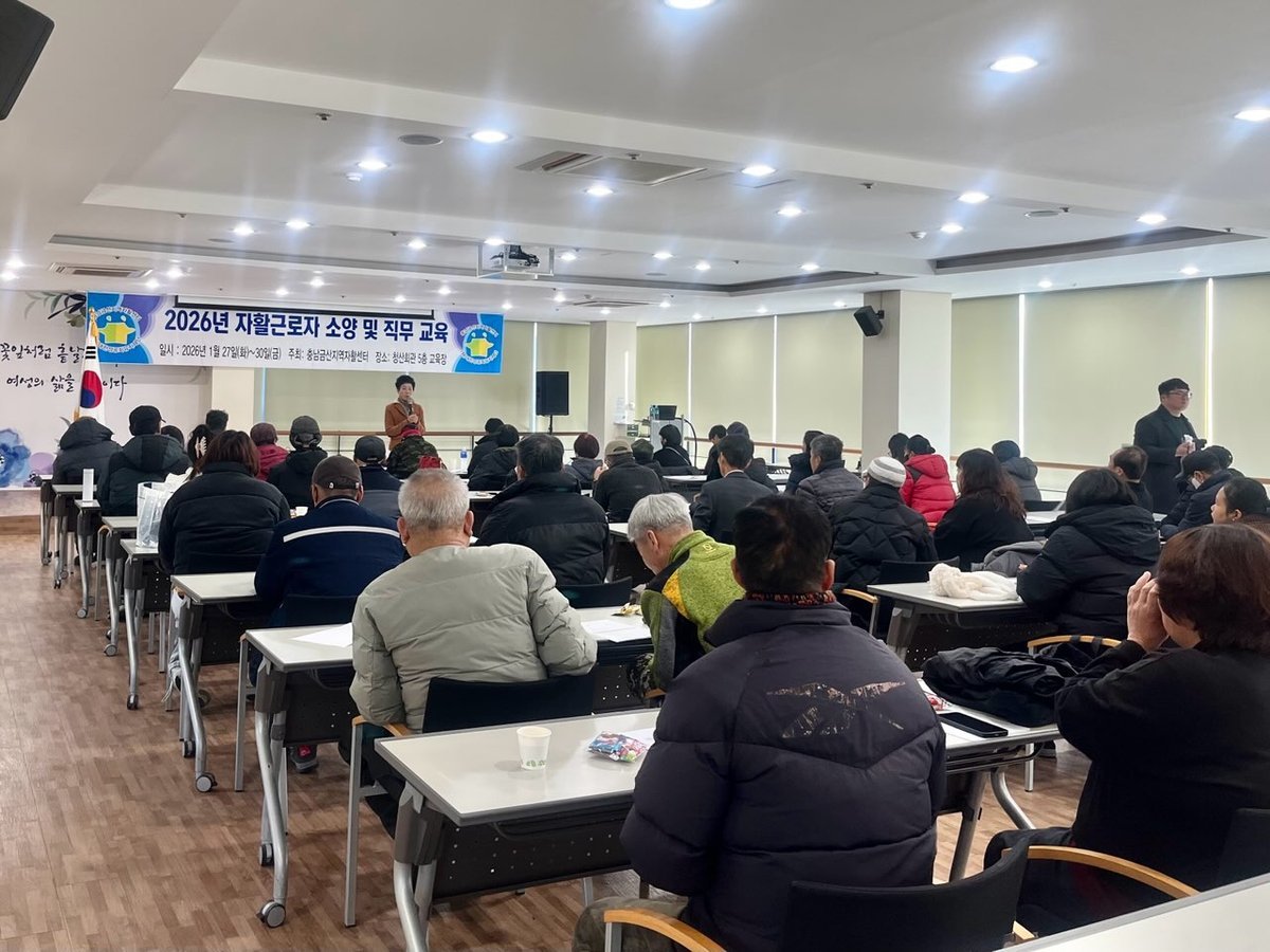 [충청뉴스큐] 충남금산지역자활센터는 지난 27일 금산읍 청산회관 5층 교육실에서 자활근로사업 참여자 및 센터 종사자 등 70명이 참석한 가운데 2026년도 자활근로사업 참여자 직무교육에 나섰다.