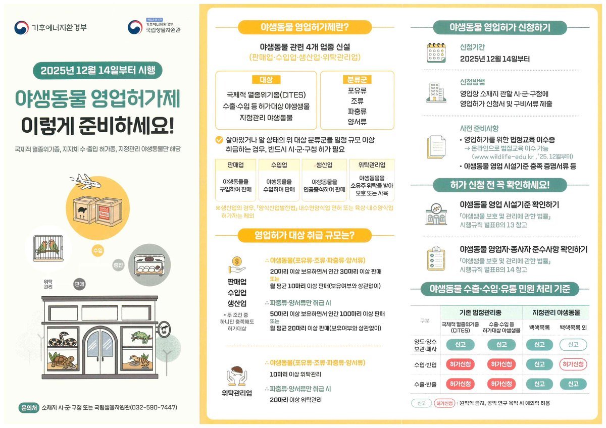 이번 제도는 야생동물로 인한 감염병 위험을 줄이고 무분별한 거래를 예방하기 위해 도입됐다.