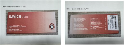 [충청뉴스큐] 식품의약품안전처는 의료기기제조업체인 ‘디케이메디비젼’에서 제조한 ‘DAVICH LENS 3DAY COLOR’ 등 매일착용소프트콘택트렌즈 중 아래 16개 모델에 대해 판매를 중단하고 회수 조치했다고 밝혔다.