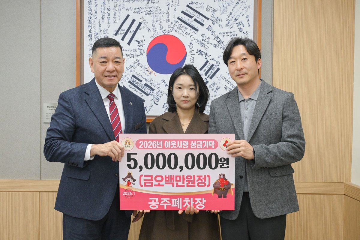 최원철 시장은 “지역 곳곳에서 묵묵히 나눔을 실천해 주시는 분들 덕분에 공주시가 더욱 따뜻해지고 있다”며 “기탁해 주신 소중한 성금은 취약한 아동들에게 희망이 될 수 있도록 투명하고 의미 있게 사용하겠다”고 말했다.