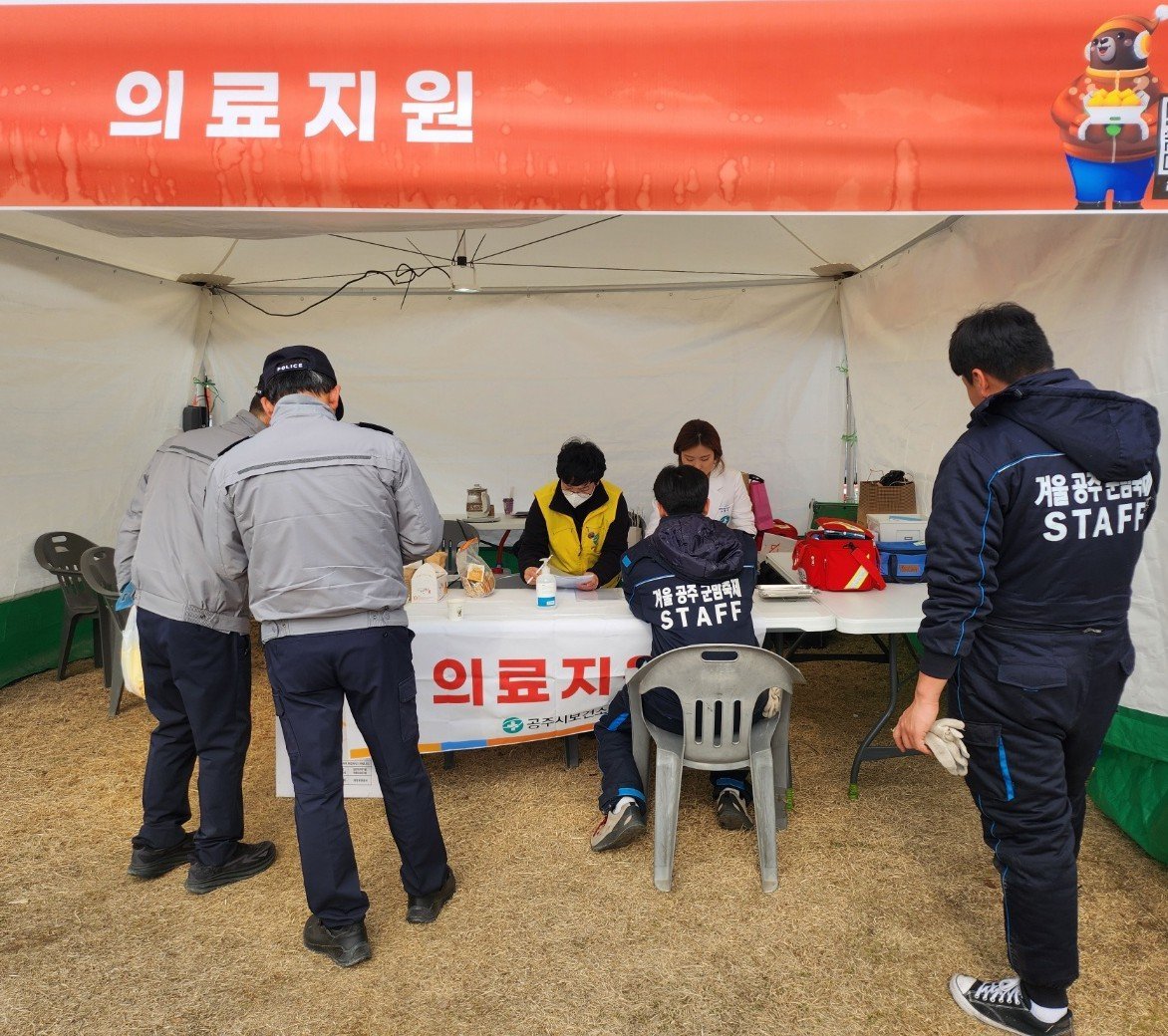 [충청뉴스큐] 공주시는 ‘제9회 겨울공주 군밤축제’기간 행사장을 찾은 관광객과 주민의 안전을 위해 현장에서 의료지원 서비스를 운영했다고 밝혔다.