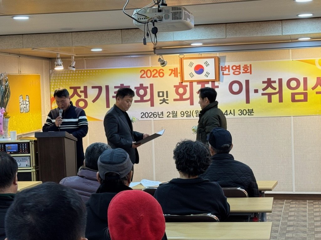[충청뉴스큐] 공주시 반포면 계룡산지역번영회는 지난 9일 계룡산콘도 세미나실에서 번영회 회원과 관내 기관·단체장 등 30여명이 참석한 가운데 회장 이·취임식을 개최했다고 밝혔다.
