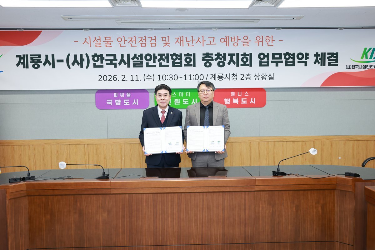 [충청뉴스큐] 충남 계룡시는 11일 한국시설안전협회 충청지회와 ‘계룡시 시설물 안전점검 및 재난사고 예방을 위한 업무협약’을 체결했다고 밝혔다.
