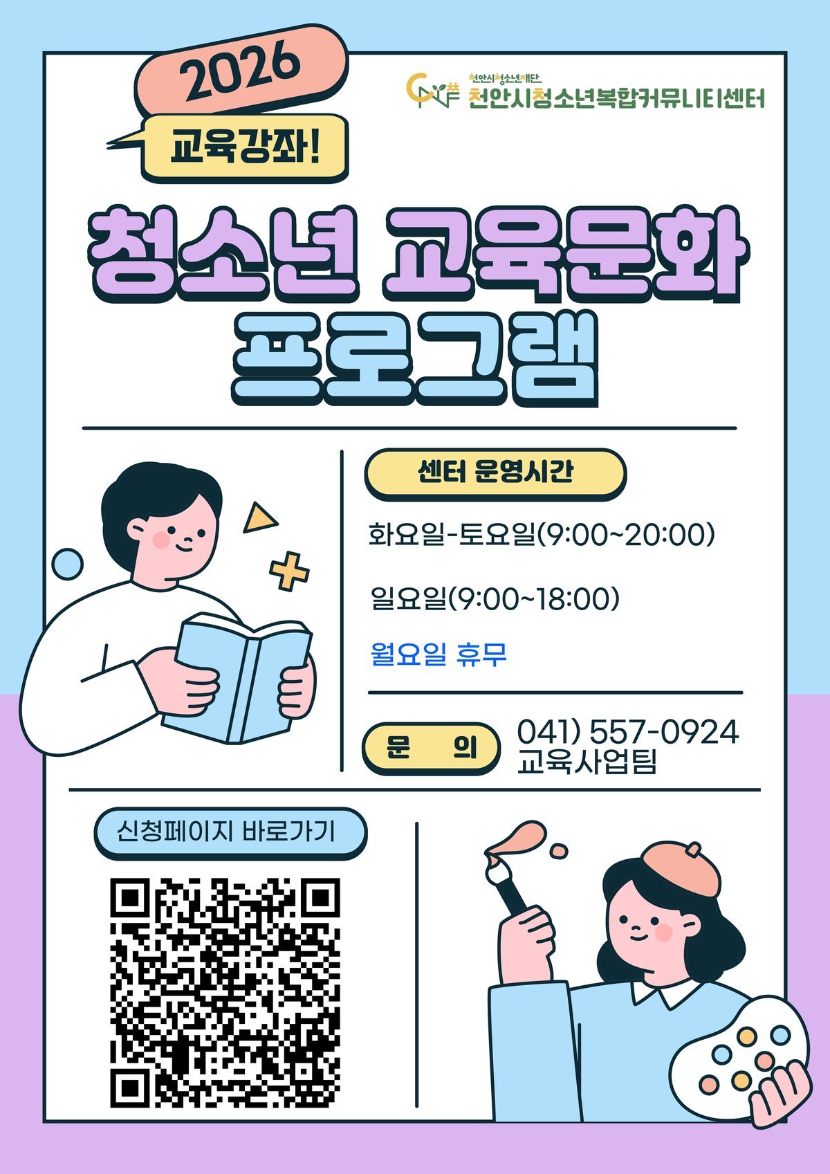 [충청뉴스큐] 천안시청소년재단 천안시청소년복합커뮤니티센터가 내달부터 운영되는 ‘2026년 새 학기 교육문화 프로그램’ 수강생을 모집한다고 12일 밝혔다.