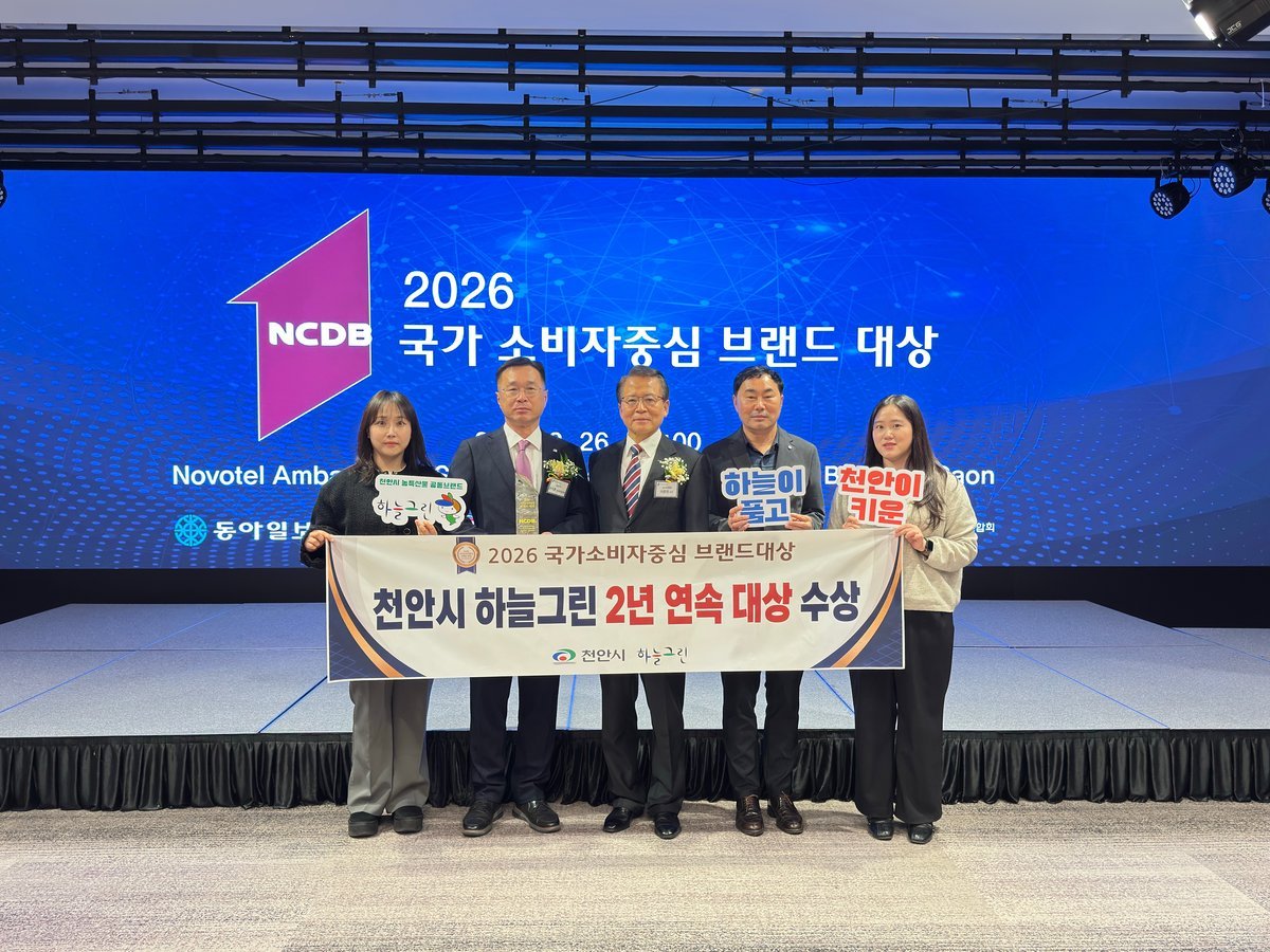 천안시는 지난 26일 서울 노보텔 앰배서더 동대문에서 열린 ‘2026 제13회 국가소비자중심 브랜드대상’ 시상식에서 농특산물 공동브랜드 부문 대상을 수상했다고 밝혔다.