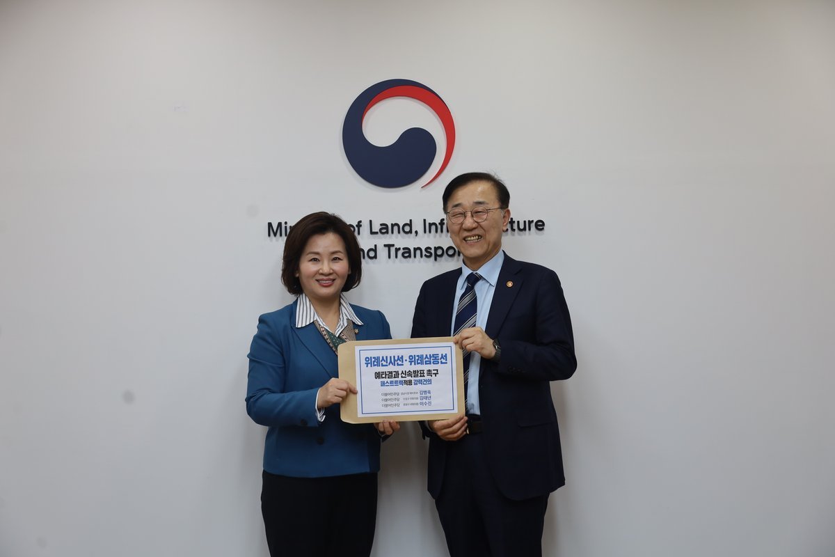이수진의원은 지난 3월 5일 김윤덕 국토교통부 장관에게 위례신사선, 위례삼동선 행정 패스트트랙 적용을 강력하게 건의한 바 있다.