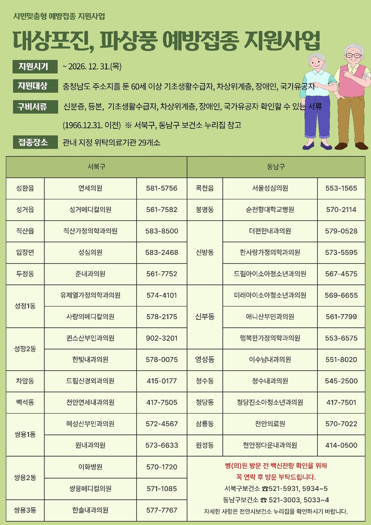 자세한 사항은 천안시 서북구 동남구보건소 누리집에서 확인할 수 있다.