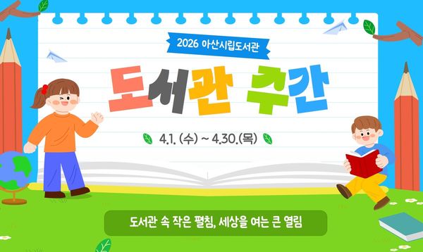 [충청뉴스큐] 아산시립도서관은 4월 도서관 주간을 맞아 4월 1일부터 30일까지 한 달간 시민과 함께하는 다양한 독서 문화 행사를 운영한다.