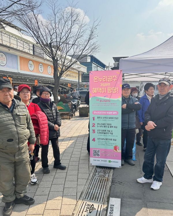 이번 홍보 활동은 산성시장 안 문화공원에서 진행됐으며 제17대 산성시장 상인회장 취임식과 비전 선포식을 찾은 시민과 관광객을 대상으로 ‘온누리 공주 시민제도’가입을 알리고 참여를 독려하기 위해 마련됐다.
