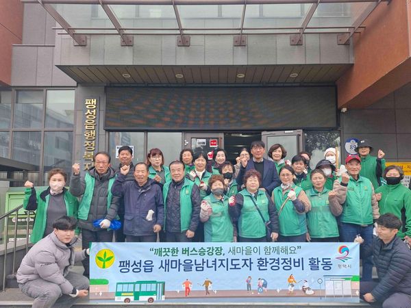 [충청뉴스큐] 평택시 팽성읍 새마을남녀지도자는 지난 12일 새봄을 맞아 쾌적하고 깨끗한 대중교통 환경 조성을 위해 팽성읍 관내 버스 승강장에서 환경정화 활동과 일제 대청소를 진행했다.