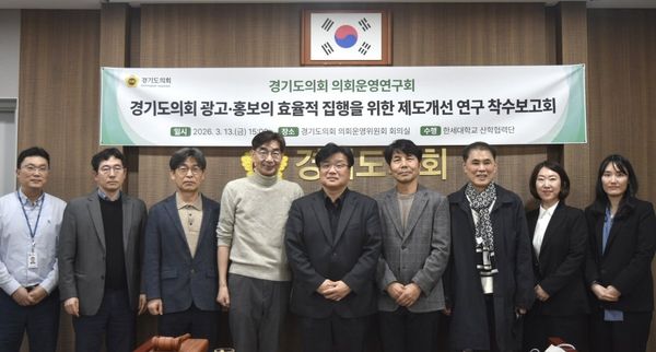 [충청뉴스큐] 경기도의회 의회운영연구회는 지난 13일 운영위원회 회의실에서 경기도의회 광고 홍보의 효율적 집행을 위한 제도개선 연구 연구용역 착수보고회를 개최했다.