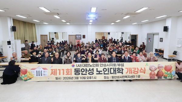 [충청뉴스큐] 대한노인회 안성시지회는 3월 13일 서안성노인대학 개강식을 끝으로 지회 부설 3개 노인대학의 2026년도 노인대학 개강식을 모두 마치고 본격적인 교육과정 운영에 들어갔다.