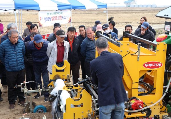 군은 지난 16일 태안읍 상옥리 소재 농가에서 관내 마늘 재배 농업인과 군 관계자 등 100여명이 참석한 가운데 ‘태안마늘 일괄 파종 기계화 연시회’를 개최하고 기계 작동 원리와 운용 방법 설명 및 현장 시연을 통해 참석자들의 이해를 도왔다.