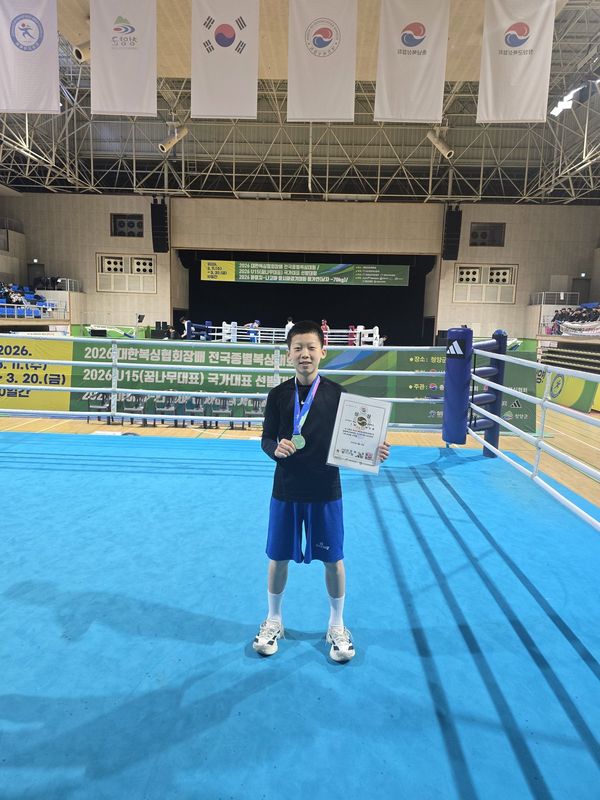 [충청뉴스큐] 진해중학교 소속 복싱 유망주 배태랑 선수가 대한 복싱협회 주관 U15 국가대표 선발전에서 금메달을 목에 걸며 태극 마크를 달았다.