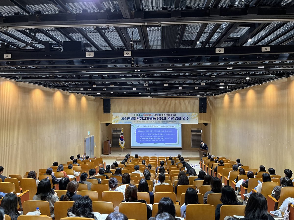 [충청뉴스큐] 대전시교육청은 3월 17일부터 18일까지 대전교육정보원 다목적 강당에서 관내 초 중 고 특수 각종학교의 학생자치활동 담당 교사를 대상으로 ‘2026학년도 학생자치활동 담당자 역량 강화 연수’를 실시한다고 밝혔다.