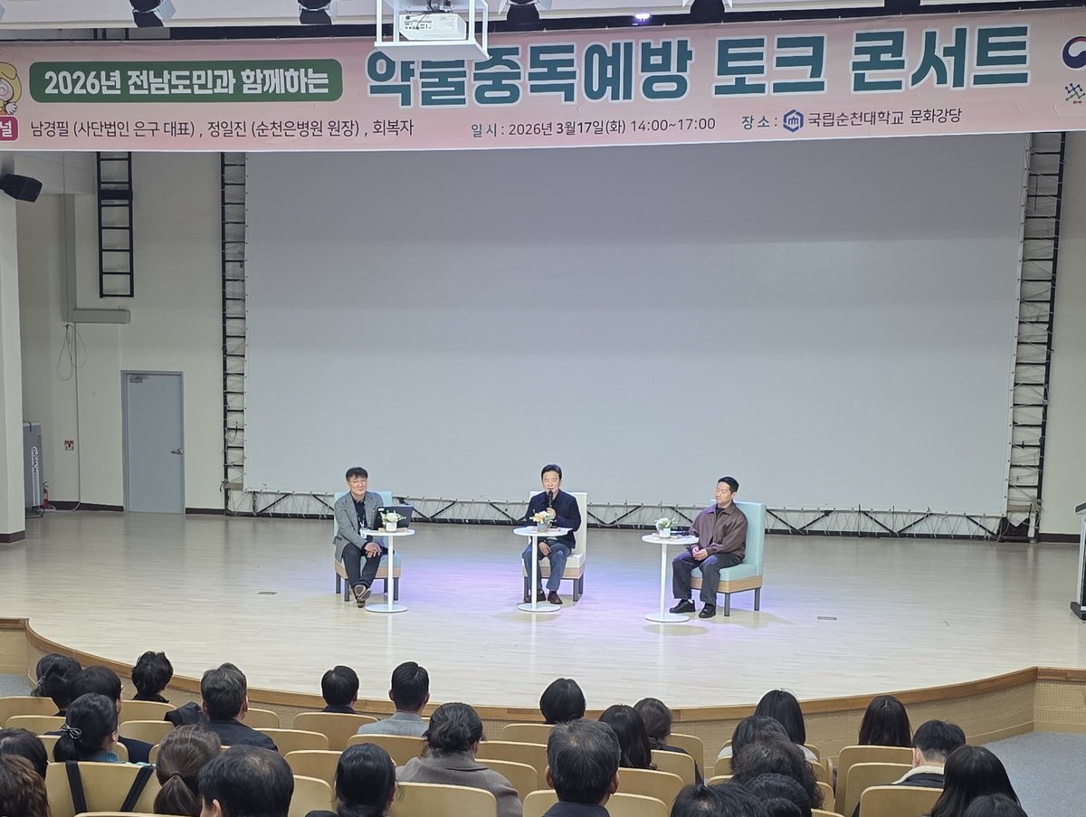 [충청뉴스큐] 전라남도와 한국마약퇴치운동본부 전남함께한걸음센터는 약물중독예방 토크콘서트를 지난 17일 국립순천대학교에서 열고 마약 중독의 위험성과 회복 지원 방안을 논의했다.