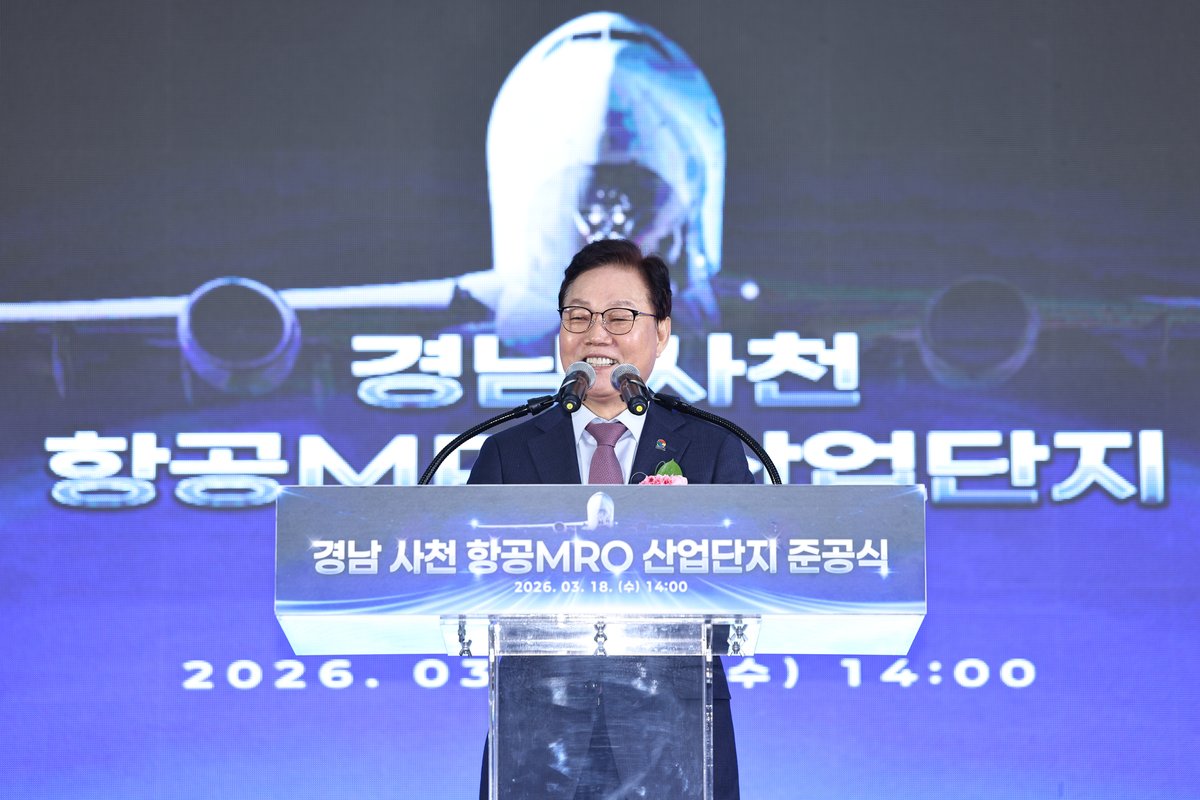 [충청뉴스큐] 경상남도가 18일 사천 항공 유지·보수·정비 산업단지 준공식에서 “사천 항공MRO 단지는 경남을 대한민국 우주항공의 글로벌 수도로서 자리매김하게 할 것”이라며, 경남을 동북아 최고의 항공정비 거점으로 육성하겠다는 강력한 비전을 선포했다.