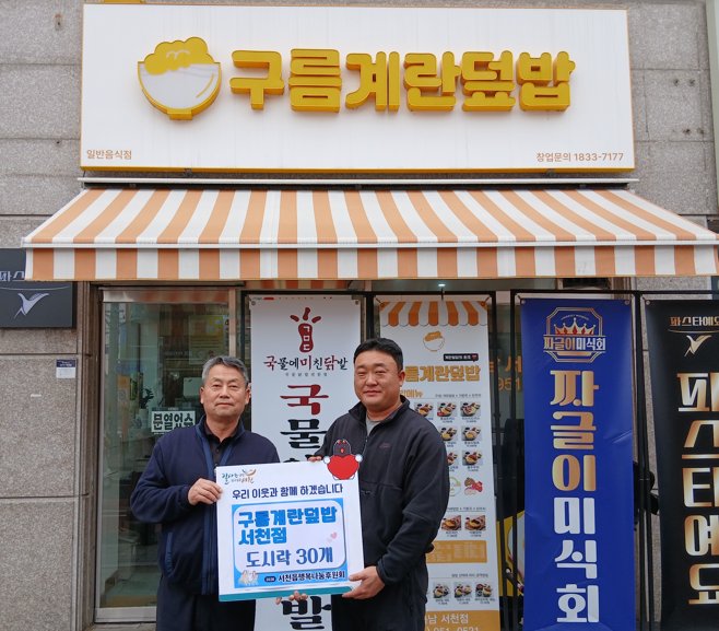 [충청뉴스큐] 서천읍행복나눔후원회는 지난 18일 구름계란덮밥 서천점으로부터 관내 취약계층 아동들을 위한 도시락 30개를 후원받았다.