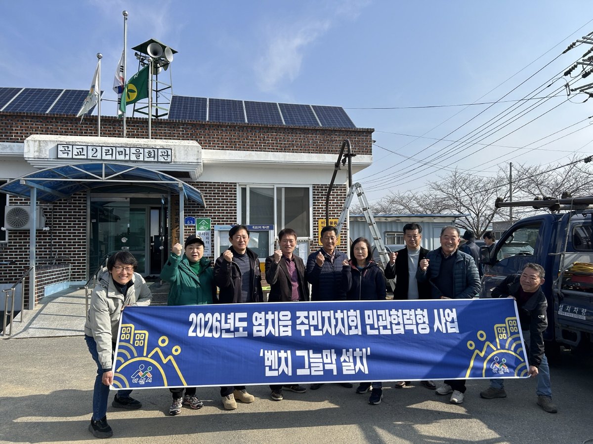 심용근 염치읍장은 "주민들을 위한 쉼터 환경 개선에 힘써준 염치읍 주민자치회에 감사드린다"며 "앞으로도 민관이 협력해 주민 삶의 질 향상을 위한 다양한 사업이 이어지길 기대한다"고 말했다.