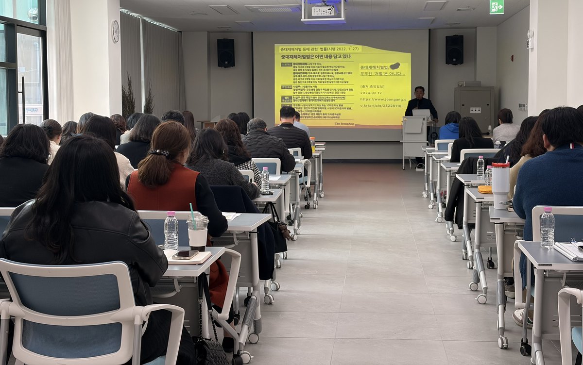 교육은 중대재해처벌법 주요 내용과 사회복지시설 적용 사례, 안전보건관리체계 구축 방안 등 실무 중심으로 구성됐다.